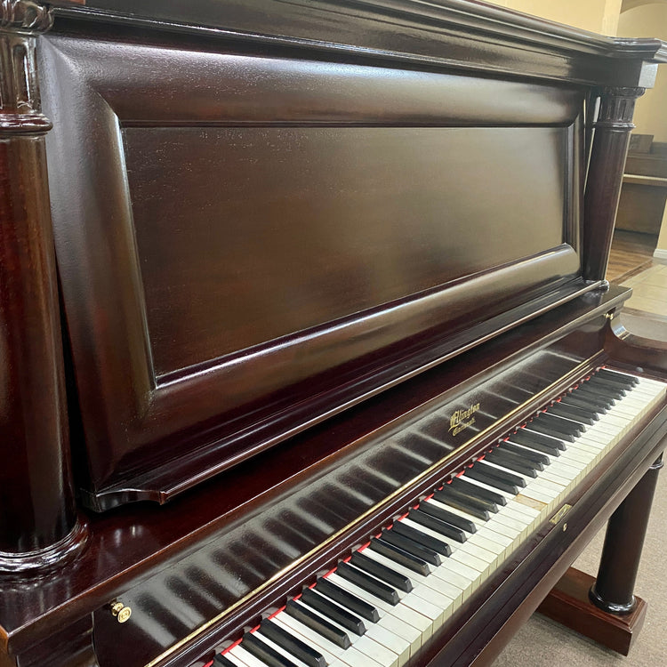 Ellington pianos, a prominent brand produced by the Baldwin Piano Company, were crafted with exceptional quality from 1893 to 1930. Renowned for their rich sound and elegant design, these pianos were made in Cincinnati and featured high-quality materials like quarter-sawn oak, often in the carved Victorian style. They are full-size upright pianos with long strings and broad soundboards, producing a deep, resonant tone comparable to many baby grand pianos. Ellington pianos are not only celebrated for their tonal quality but also for their beautifully detailed cabinetry, making them both a musical and aesthetic treasure for any home.